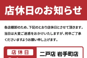 【ホームセンター】棚卸店休日のお知らせ