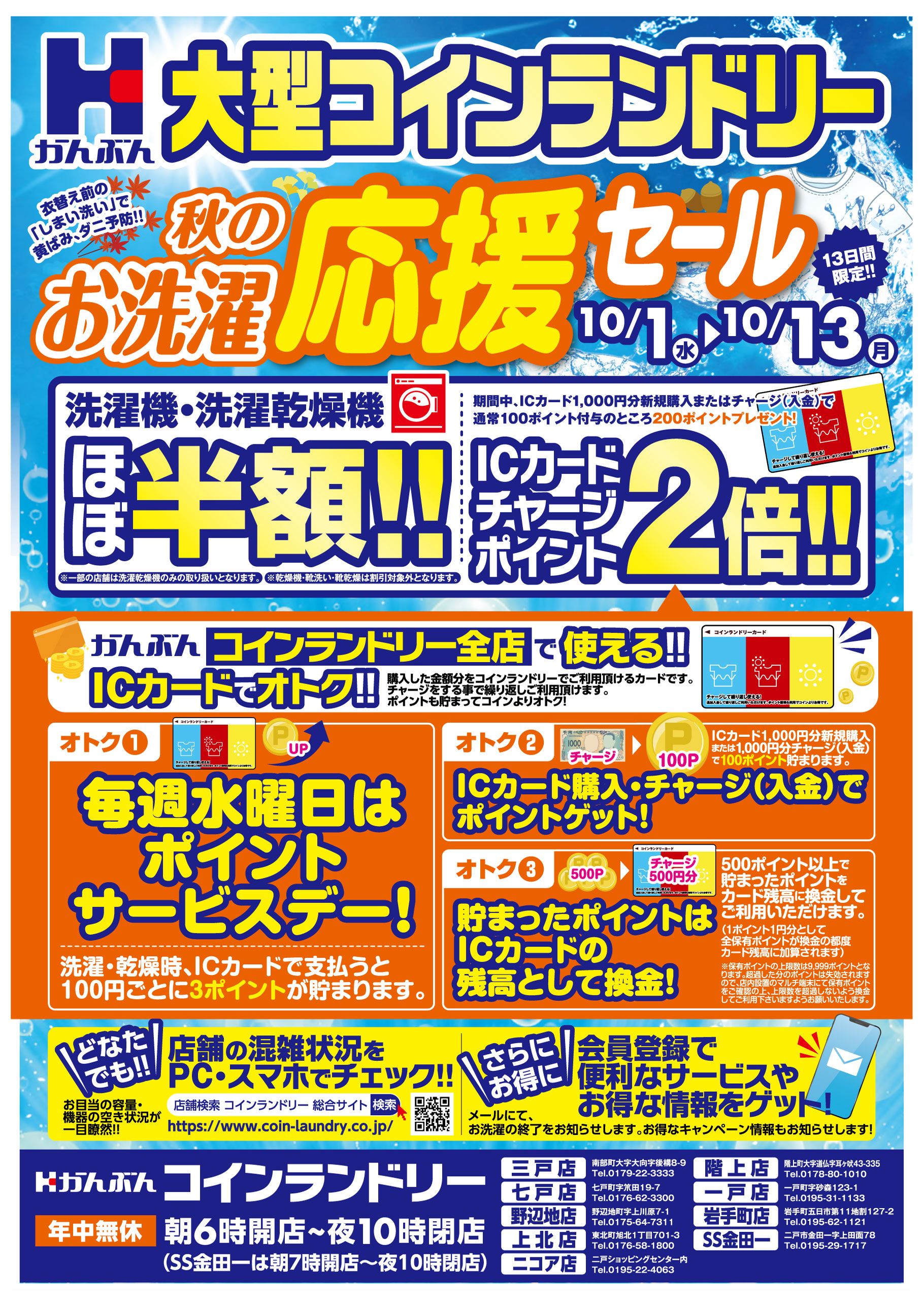 チラシ: コインランドリー秋の衣替え応援セール 2025年10月1(水)~10月13日(月)
